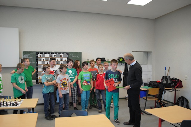 Aus diesem Grund ließ Schach-AG-Leiter Peter Spillmann zusätzlich auch das Team der WKIII eine Klasse höher antreten. Einziger Gegner war das Team aus Haltern (Realschule).
