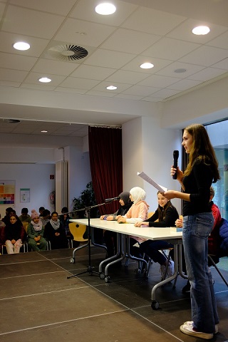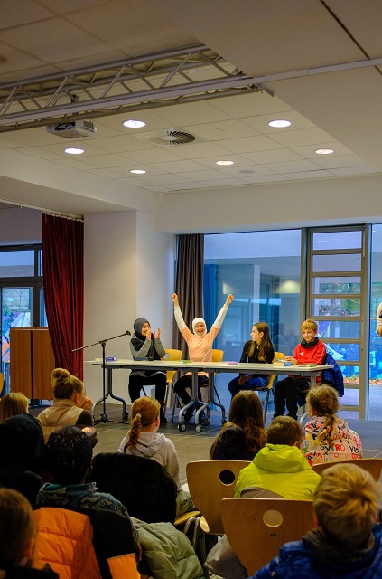 Zümra Yilmaz (6a), Layan Karman (6b), Emma Adamczak (6c) und Ben Basse (6d), die sich zuvor als SiegerInnen ihrer jeweiligen Klassen qualifiziert hatten, stellten an diesem Tag ihr Vorlesetalent vor der Jury und ihren Mitschülerinnen und Mitschülern unter Beweis und nahmen ihre Zuhörerinnen und Zuhörer mit in fremde Welten. In der ersten Runde wurde eine etwa dreiminütige selbst ausgewählte Textstelle vorgestellt und in der anschließenden zweiten Runde wurden die TeilnehmerInnen mit einer ihnen unbekannten Textstelle konfrontiert.