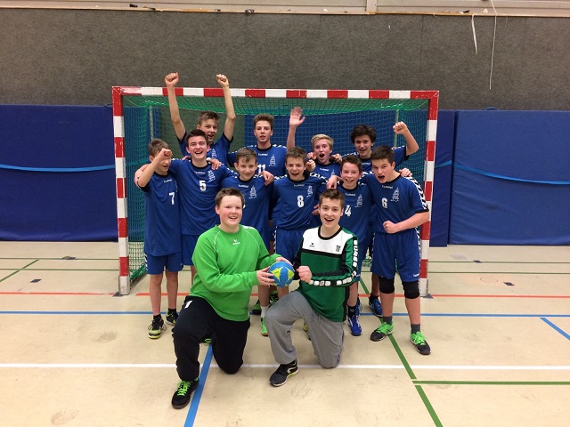 Nachdem die Hittorfer in eigener Halle die Stadtmeisterschaften gewonnen hatten, ging es nun auswärts gegen das Josef-Albers-Gymnasium in Bottrop um den Einzug in die Endrunde der Bezirksmeisterschaft. Von Beginn an spielten die Gäste aus einer stabilen 3:2:1-Deckung nach vorne und kamen durch ein geduldiges Angriffsspiel zu einfachen Toren. Durch die breite Aufstellung im Kader konnte sich schon in der ersten Halbzeit jeder Spieler in die Torschützenliste eintragen. Im weiteren Verlauf des Spiels taten sich jedoch immer mehr Löcher in unserer Abwehr auf, sodass die Gastgeber wieder aufschließen konnten. Doch dank guter Paraden unserer Torhüter, konnten die Recklinghäuser mit einer 23:17-Führung in die Halbzeitpause gehen.