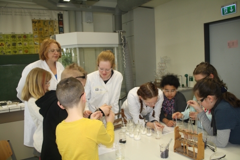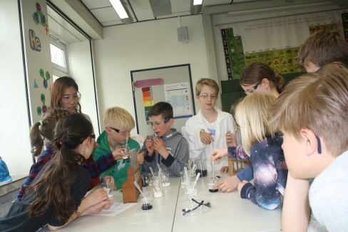 Am 13. April begrüßten wir unsere neuen Fünftklässler zum MINT-Schnnuppertag. Die Schülerinnen und Schüler lernten die Fächer Informatik, Chemie, Physik, Biologie und Technik kennen. Als Forscher und Detektive gingen sie motiviert an die Arbeit und klärten mit chemischen Untersuchungen die Frage der Herkunft von Frau Hagedorns Rotkohl. Wer hat ihn gekocht? Die Großmutter aus München oder Gelsenkirchen? Darüber hinaus bestimmten sie Insekten, programmierten Kurzfilme, bauten Kartoffelbatterien und machten unterhaltsame physikalische Experimente. In den Pausen nutzten unsere Neulinge das Angebot unserer Sporthelfer/-innen, den Schulhof spielerisch zu erkunden und probierten das Mittagessen.
