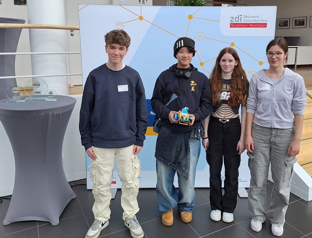 Unter dem Motto „Smart Cities“ fand am 21.03.2024 die Lokalausscheidung des zdi-Roboterwettbewerbs in Gelsenkirchen statt. Mit am Start waren auch zwei Teams des Hittorf-Gymnasiums. Bereits im Vorhinein wurden Logoroboter von den Teams so entworfen und programmiert, dass sie innerhalb von 2,5 Minuten möglichst viele Aufgaben erfolgreich bewältigen können. Die Roboter mussten z.B. Sensoren auf dem Spielfeld an festgelegte Positionen bringen, Lebensmittel vom Erzeuger abholen und am Marktplatz abliefern oder Grünanlagen installieren. Nachdem die Hittbots im letzten Jahr bereits den 4. und 5. Platz belegt hatten, war es das erklärte Ziel, in diesem Jahr ähnlich erfolgreich zu sein. Tatsächlich konnten im Laufe des Wettbewerbs noch weitere Aufgaben in Angriff genommen werden, sodass das Team Hittbots 1 am Ende mit 327 Punkten klar den ersten Platz belegte. Mit diesem Erfolg ist das Team gleichzeitig für den Regionalwettbewerb am 01.06.2024 in Recklinghausen qualifiziert. Auch das Team Hittbots 2 erreichte am Ende einen respektablen 8. Platz von insgesamt 13 Teams. Die Wettbewerbsteilnahme findet am Hittorf-Gymnasium im Rahmen des WPII Fachs Informatik statt. Interessenten können sich gerne bei Herrn Weßels oder Herrn Schauf weitere Informationen einholen.