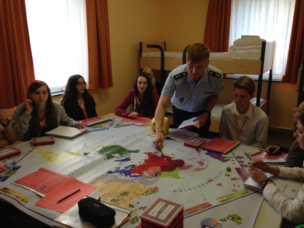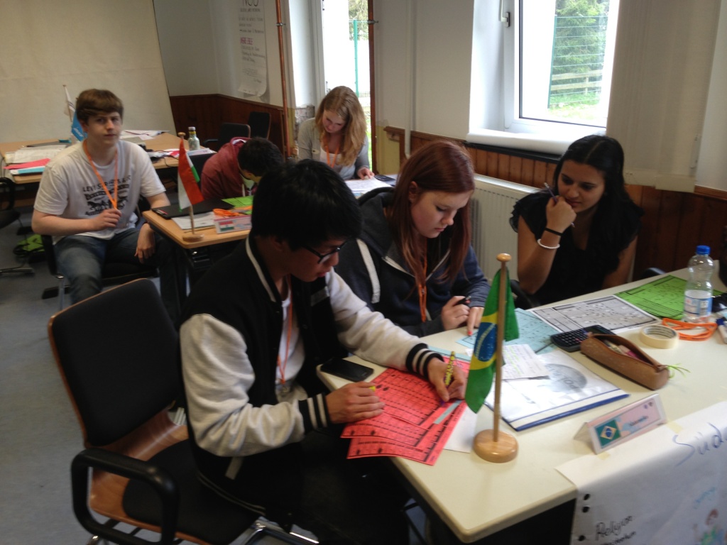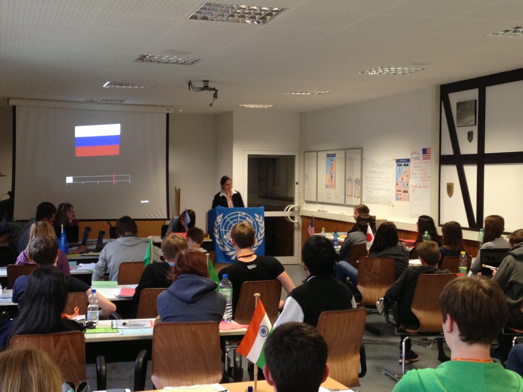36 SchülerInnen der Stufe EF hatten die Gelegenheit, vom 6. bis 8. Mai 2013 an dem Planspiel teilzunehmen. Unsere SchülerInnen schlüpften dabei in die Rollen von Regierungschefs, Oppositionsführern sowie Staats- und Umweltministern aus elf Regionen der Welt. Zusätzlich übernahmen einige SchülerInnen die Rolle der Vertreter internationaler Organisationen, Netzwerke und der Weltpresse, um globale Probleme zu diskutieren und zu bearbeiten. Hierbei sind sie nicht nur ihren Regionen und der Organisationen verpflichtet, sondern zusätzlich in ein dichtes Netz an internationalen Verträgen und Abkommen eingebunden.?? Weiterhin müssen alle Spieler ihre Interessen in der Vollversammlung der United Nations sowie in weiteren Gremien wie z.B. dem UN-Sicherheitsrat oder der Weltbank etc. vertreten. Dank dieser intensiven Vernetzung ist ein hohes Maß an Verhandlungen und Diplomatie aber auch an Beharrlichkeit und Durchsetzungsfähigkeit notwendig.
